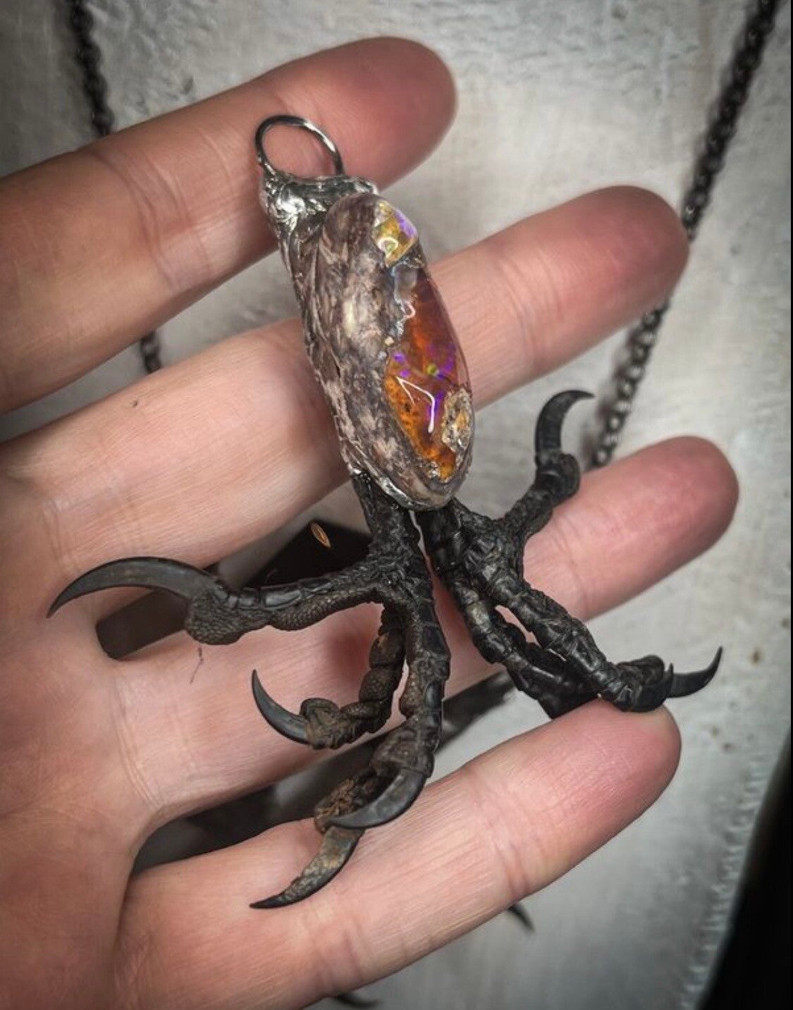 Crow Claws Soldered with the most beautiful Opal in Matrix Talisman