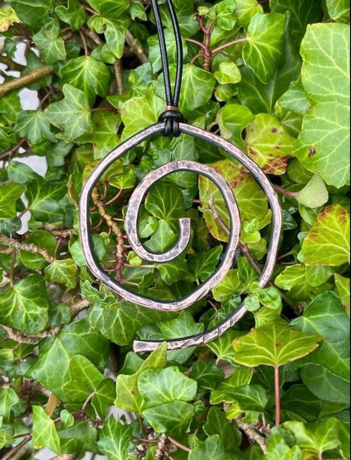 Pure Healing Solid Copper Hammered Textured Rustic Dystopian Earth Celtic Spiral Energy Necklace