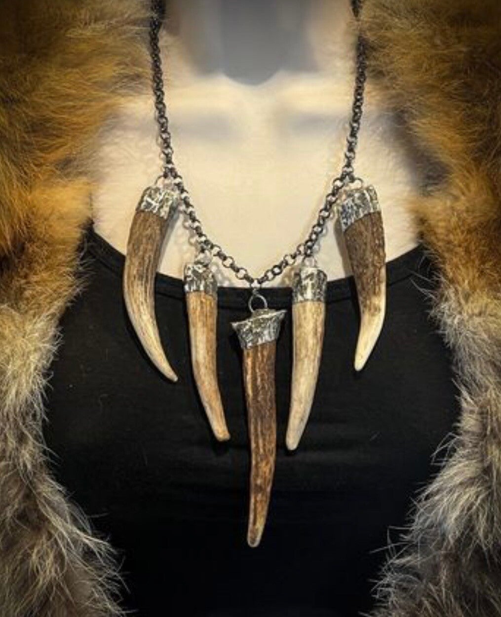 Cernunnos Gaelic God Powerful Soldered Antler Tips Chain Necklace Celtic Mythology