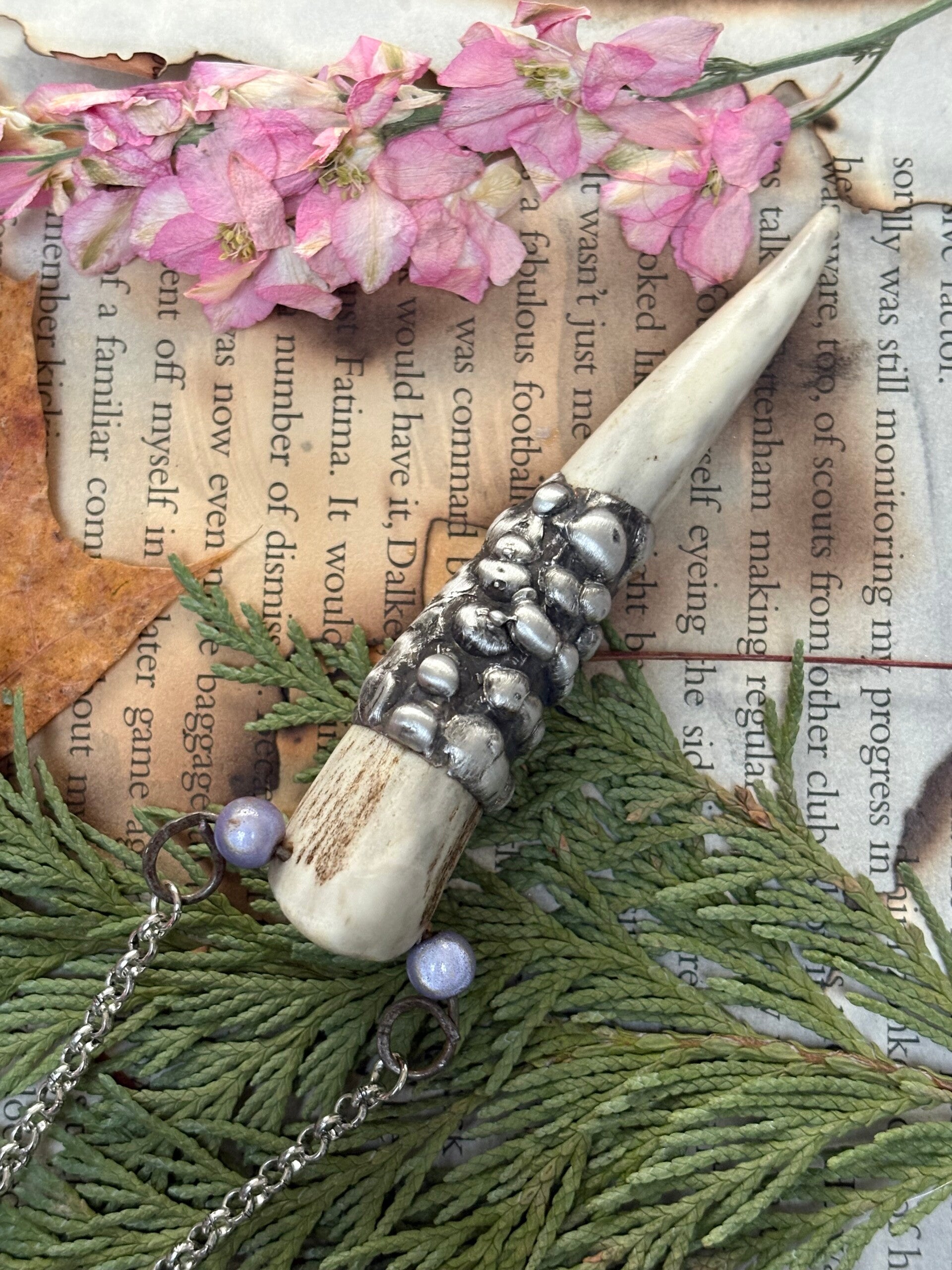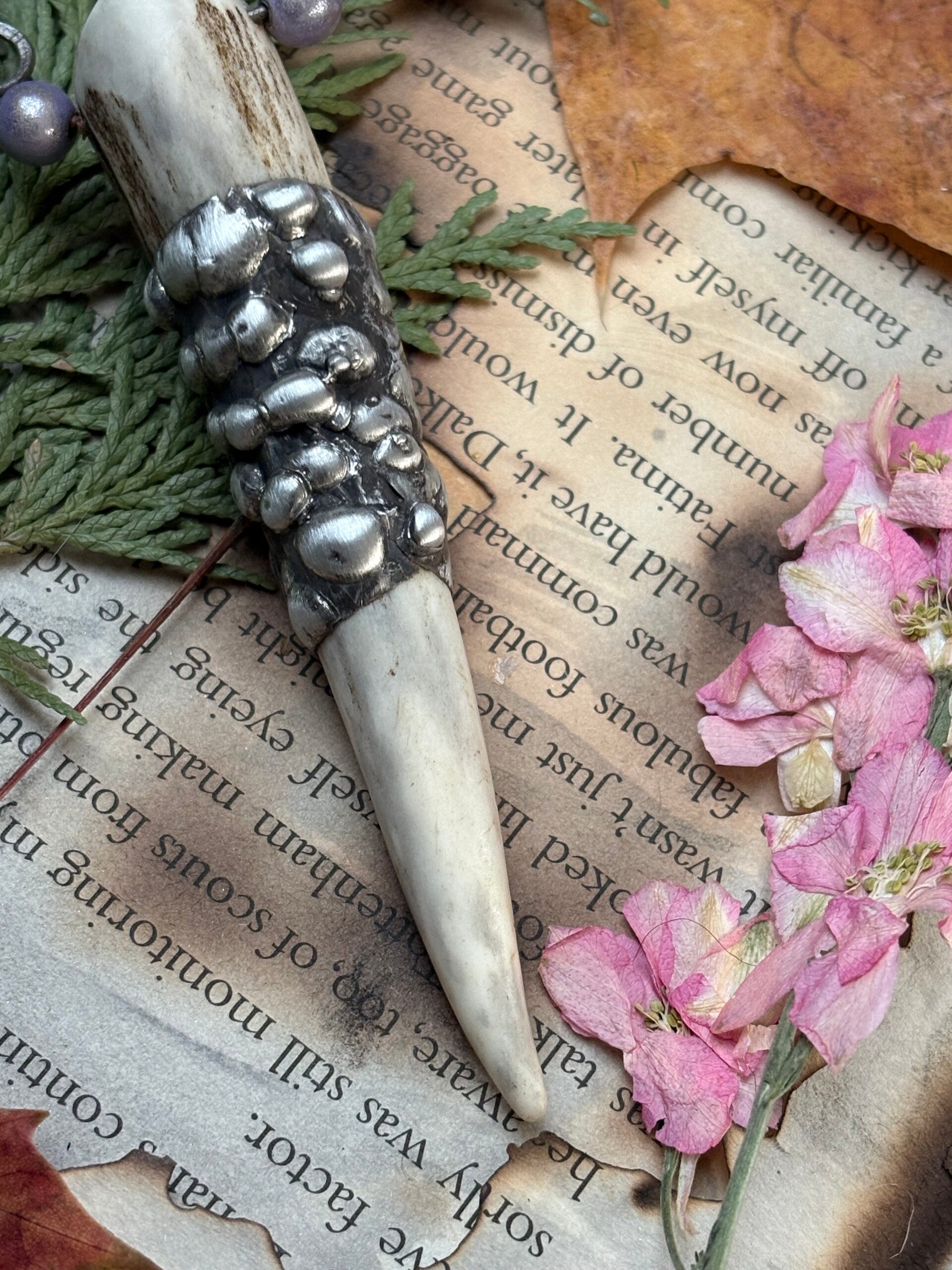 Hand-crafted from real deer antler and molten solder, this strange little beast is equal parts fantasy creature and industrial art.