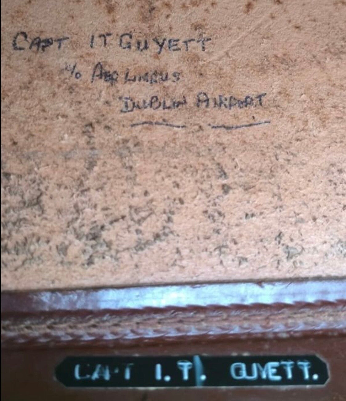 This antique leather doctor’s bag carries an unsettling presence, as though it has witnessed more than a lifetime of quiet passage. Once belonging to an Aer Lingus pilot, the bag seems steeped in the echoes of long, solitary flights and layovers in dimly lit terminals. Its surface bears a network of scratches and scuffs—marks that resemble the restless traces of many unseen hands.
