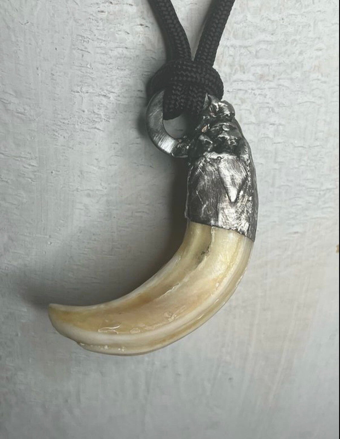 A stunning wild boar tooth from @skull.shop.berlin has been soldered to a salvaged iron loop pendant. This is a real unique and powerful piece with the most beautiful colouring 🐗